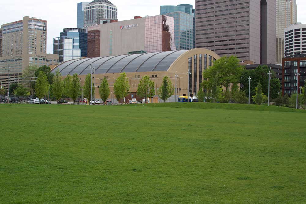 Downtown East Commons, or, the Commons, in downtown Minneapolis adds 4.2 more acres of sprawling Kentucky Bluegrass and Perennial Ryegrass to Minneapolis Park and Recreation Board’s already impressive 6,804 acres of green space blanketing the city and its suburbs.